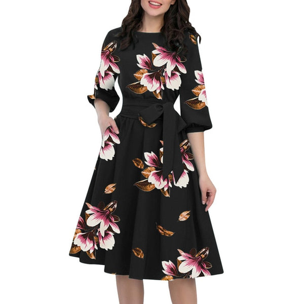 Floral Printed A-Line Elegant Formal Women Bandage Office Dress